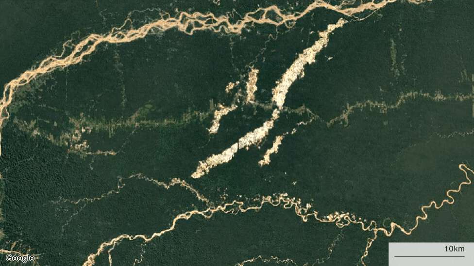 The miners strip the vegetation from the Amazon soil to look for gold. They use mercury to separate the precious metal from others, poisoning the waters and local animals in the process.